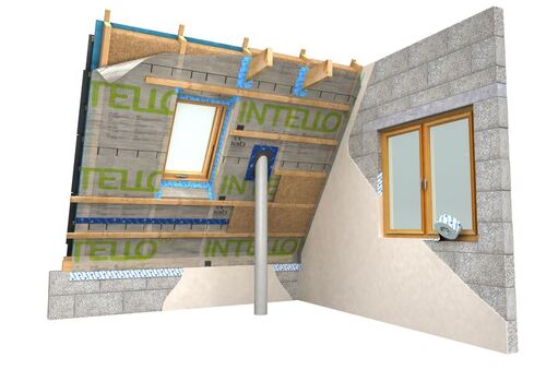 The Intello Plus Air Tightness membrane can be used internally in roofs, ceilings, walls and floors and gives maximum protection to thermal insulation where leaks can occur.