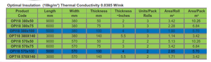 Medium-density (18kg/m³) with thermal conductivity of 0.0385 W/m²K.