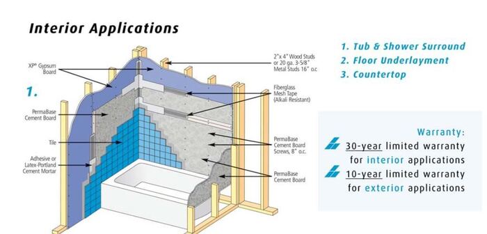 PermaBase ® Cement Board provides a durable surface designed to withstand prolonged exposure to moisture.