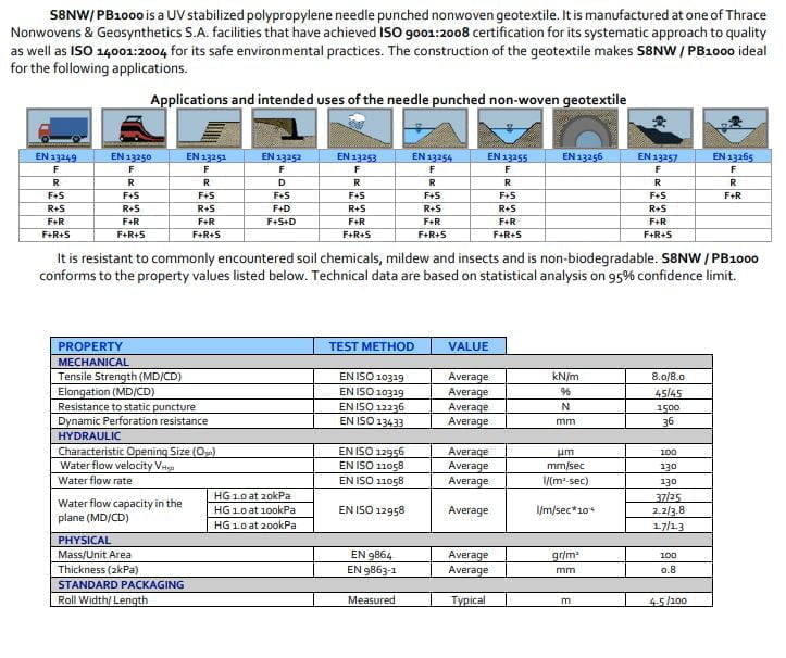 • A UV stabilized, needle punched, non-woven geotextile product.