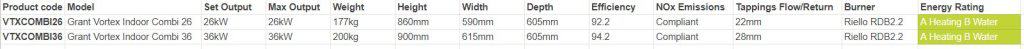 The Grant Vortex Indoor Combi Oil Boiler range are highly efficient condensing oil boilers and designed for cost effective installation and instant hot water production.